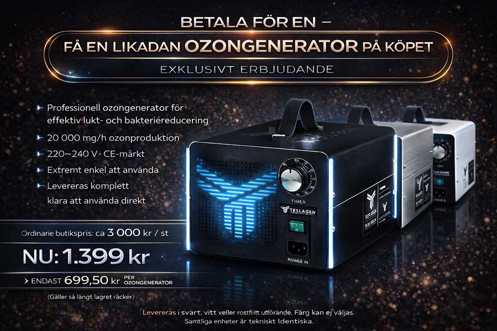 TAG-200 Ozongenerator – Kraftfull sanering mot lukter, mögel och bakterier. Integnerad avfuktning. PAKET: Köp en så får du den andra utan kostnad.